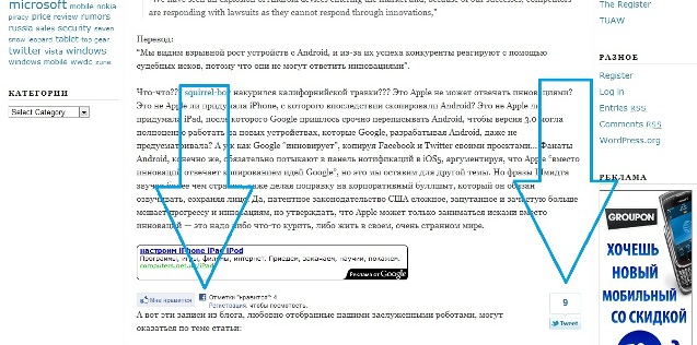 И всего лишь в двух местах в конце каждой статьи есть выбор соцсетей, однако выбор этот очень ограничен – редакция блога не пытается объять необъятное: