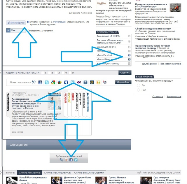 Сайты СМИ считают, что чем больше они установят кнопочек и окошечек соцсетей, тем лучше. Они пытаются предоставить читателям все, что придумало человечество. Ни одна соцсеть не остается забытой.