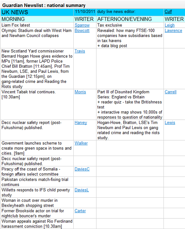 Відтепер редакція Guardian долучатиме свою аудиторію до створення новинного контенту. На блозі видання щоденно публікуватимуться переліки надісланих читачами анонсів та подій, що є новинними приводами, і пройшли редакторський відбір.
