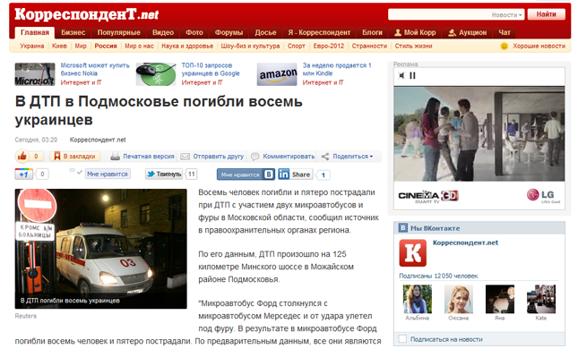 Подобных принципов, но уже в своей стилистике, придерживаются «Известия», кстати, удачно оформив кнопки социальных сетей.