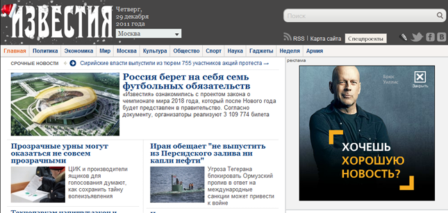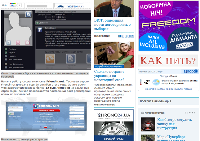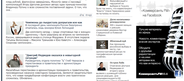 Не очень хорошо – когда реклама, а в особенности некачественная с визуальной точки зрения реклама, отвлекает от основного контента издания. Пять феерически мигающих баннеров и новостных блоков (художественную ценность баннера «Что пить? Как пить? С кем пить?» обсуждать не будем) находятся на сайте «Обозревателя» в непосредственной близости. Смотреть больше двух секунд невозможно. Не говоря уже о том, чтобы читать текст.