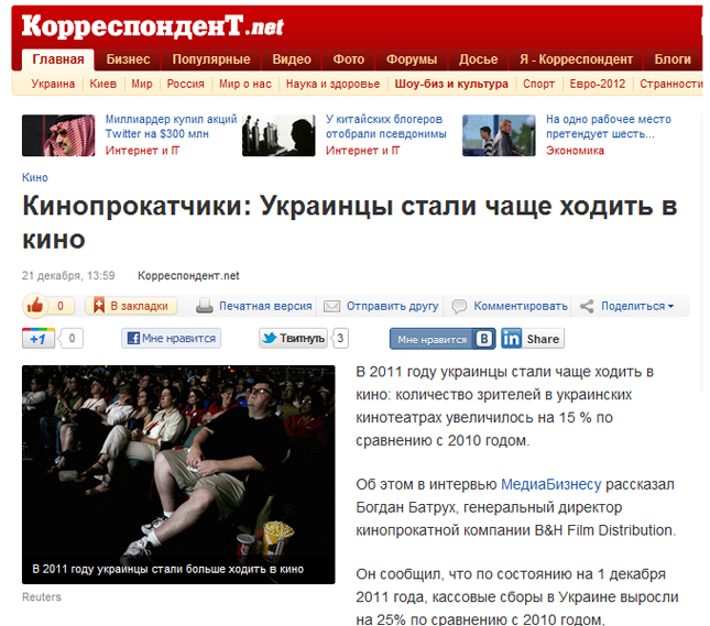 Новость о кино на The Daily Telegraph и «Корреспонденте».