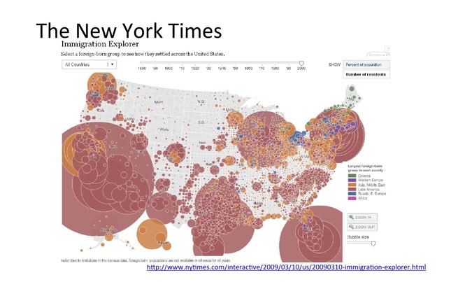 Прикладом опрацювання надзвичайної кількості інформації і масштабної роботи програмістів є проект New York Times про іммігрантів.