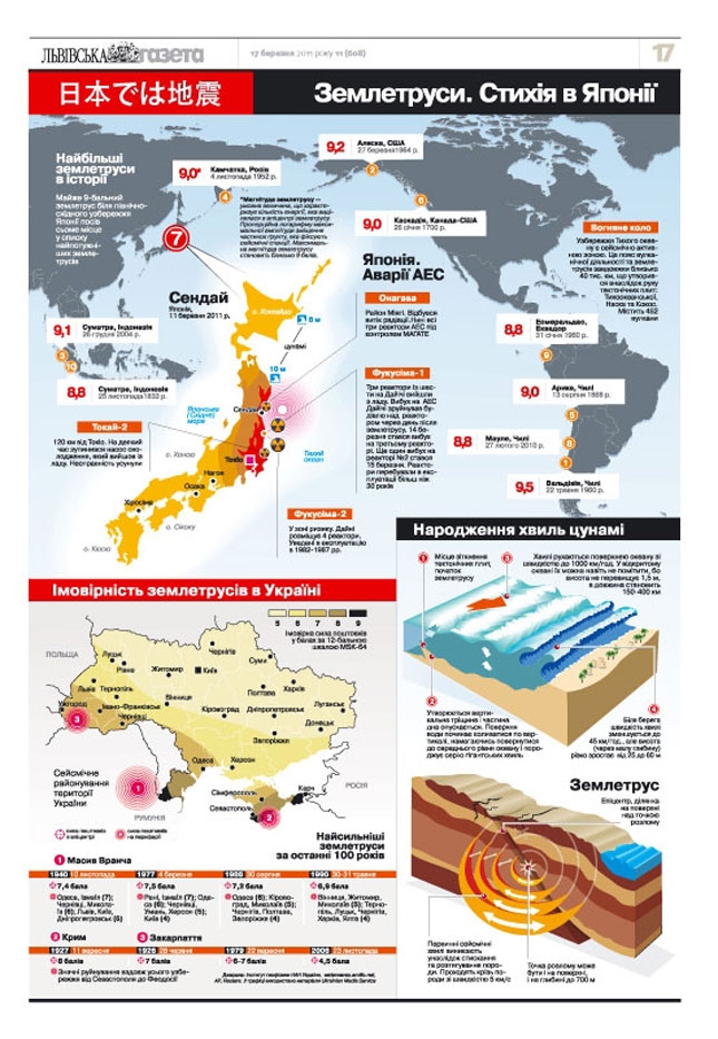 Приклад зі «Львівської газети» про землетруси в Японії: