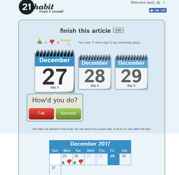 Творці проекту 21habit зрозуміли, що мотивувати можуть гроші. Працює все так: закидаєш на рахунок 21 долар, ставиш якусь ціль — скажімо, щодня читати по сто сторінок. Протягом наступних трьох тижнів заходиш на сайт і відмічаєш, чи справляєшся зі щоденним завданням. Якщо так, то за кожен день тобі вертають по долару. Якщо ні, гроші йдуть на благодійність. На сайті є перелік організацій, куди спрямовують гроші, — там і Amnesty International, і American Red Cross, і ще з десяток різних організацій.