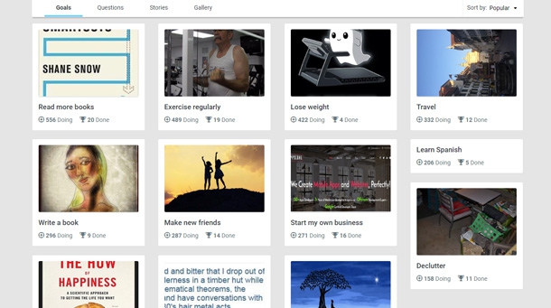 Крім того, тут є список найпопулярніших цілей, які ставлять собі люди: читати більше книжок, написати книжку (система не збреше, що 296 людей зараз цим активно займаються), вивчити іспанську, бути щасливим, знайти нових друзів, схуднути, почати власний бізнес (270 людей!) та інше.