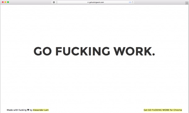 Схоже, що для мене єдиним ефективним онлайн-інструментом для дотримання новорічних обіцянок буде додаток Go fucking work. Його можна встановити собі на комп’ютер, внести список сайтів, які вам заважають жити, — й кожна спроба якийсь із них відкрити завершуватиметься словами Go fucking work на екрані. Так би мовити, до нового життя з понеділка треба йти маленькими кроками.