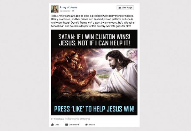 Російська реклама стосувалася болючих для США тем. Це расові проблеми, суверенітет Техасу, нелегальна міграція, право на зберігання зброї, релігійні питання. Чимало постів виглядали доволі безневинно, а деякі були відверто проти кандидатки на посаду президента США Гілларі Клінтон. У Facebook заявили, що дописи побачило близько 10 млн людей. Та насправді цифра, радше за все,більша.