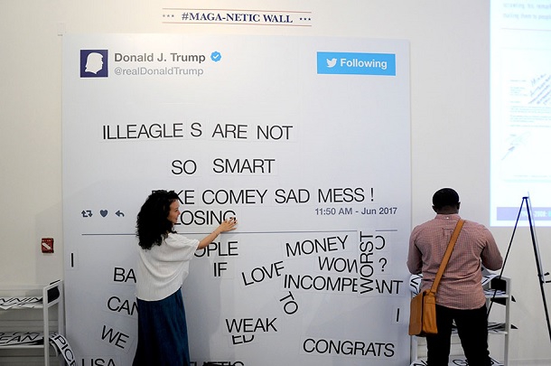 Одна з експозицій у «Президентській бібліотеці твітів Трампа»: відвідувачі можуть скласти на дошці своє повідомлення у стилі Трампа.