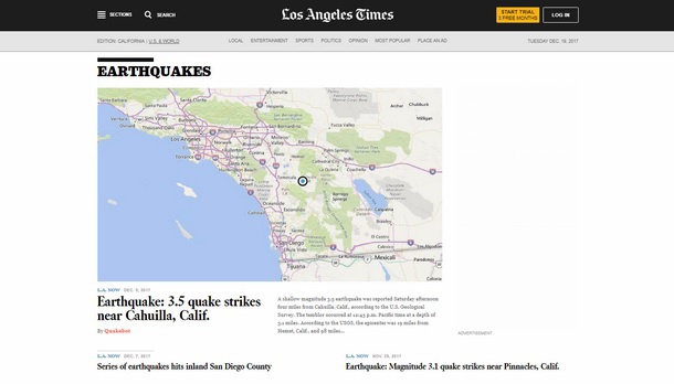 Розділ газети Los Angeles Times, який веде програма The Quakebot.