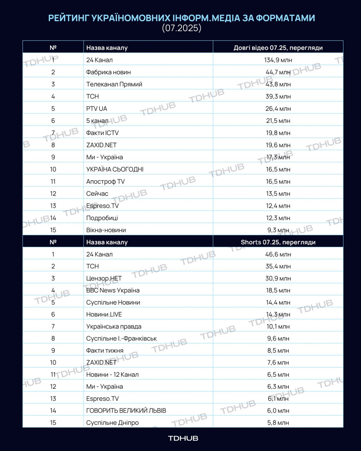 «Липневий рейтинг — це не просто цифри. Це дзеркало змін у поведінці аудиторії, переосмислення форматів, і чіткий сигнал: короткий формат — не тренд, а нова норма», — резюмували в Tyshchuk Digital HUB.