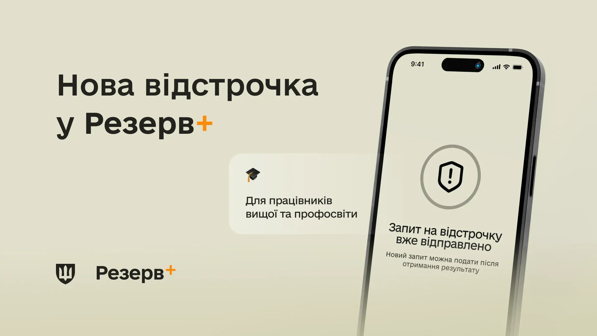 В оновленому застосунку «Резерв+» з’явилася нова відстрочка — для наукових, науково-педагогічних та педагогічних працівників закладів вищої, фахової передвищої, професійної освіти, а також наукових установ та організацій.