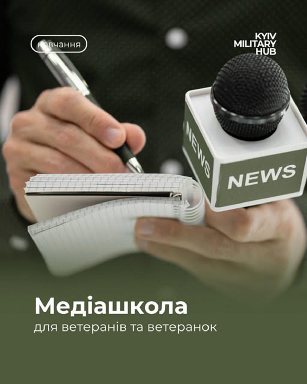 У столиці стартує медіашкола для ветеранів, організована «Київ Мілітарі Хабом» спільно з телеканалом «Київ24» і радіо «Київ FM». Протягом двох із половиною місяців учасники здобуватимуть базові навички журналістики, фактчекінгу, сторітелінгу та публічних виступів. Навчання проходитиме тричі на тиждень. Проєкт покликаний допомогти ветеранам адаптуватися до мирного життя через медійну діяльність.