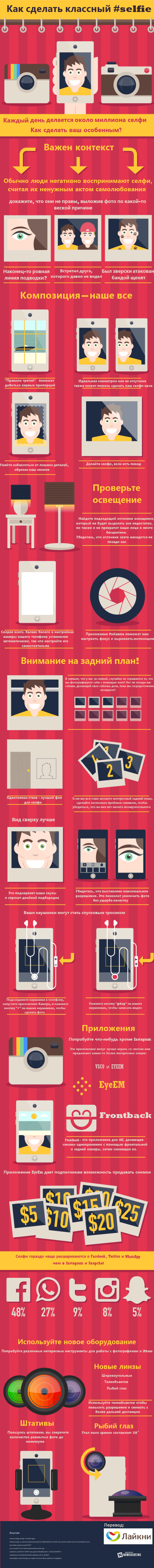 Російський сайт likeni.ru переклав інфографіку американського агентства NowSourcing про те, як зробити краще селфі.