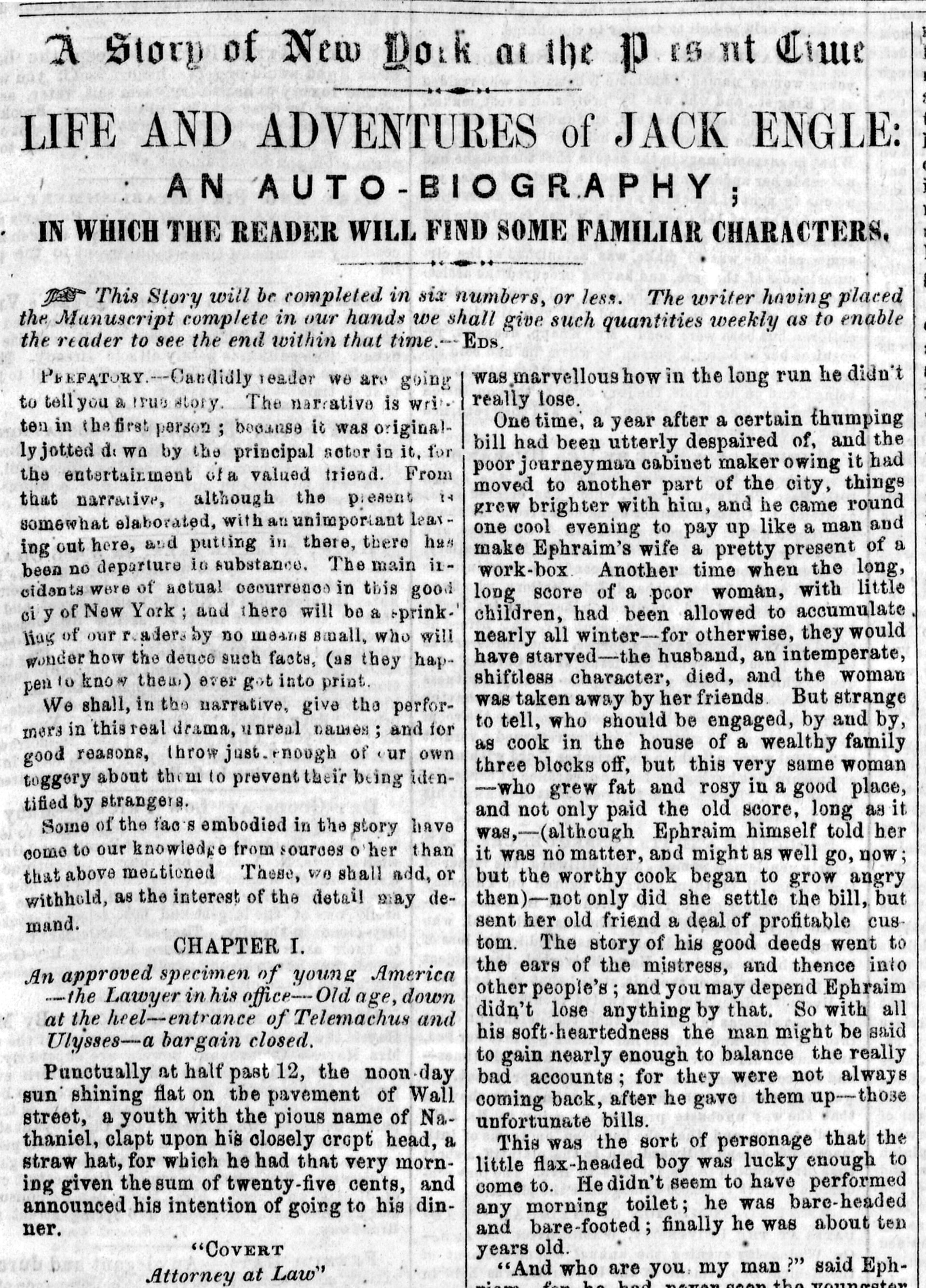 Як пише The Guardian, роман називався «Життя і пригоди Джека Енгла» і був опублікований без вказівки автора.