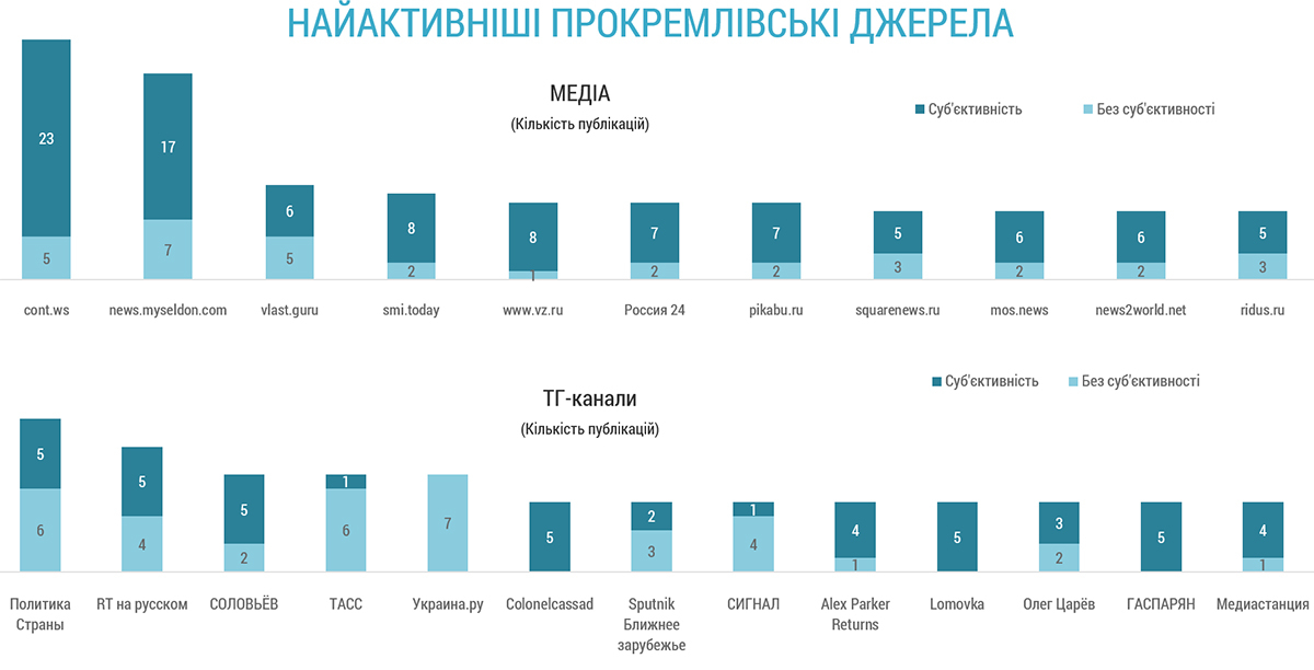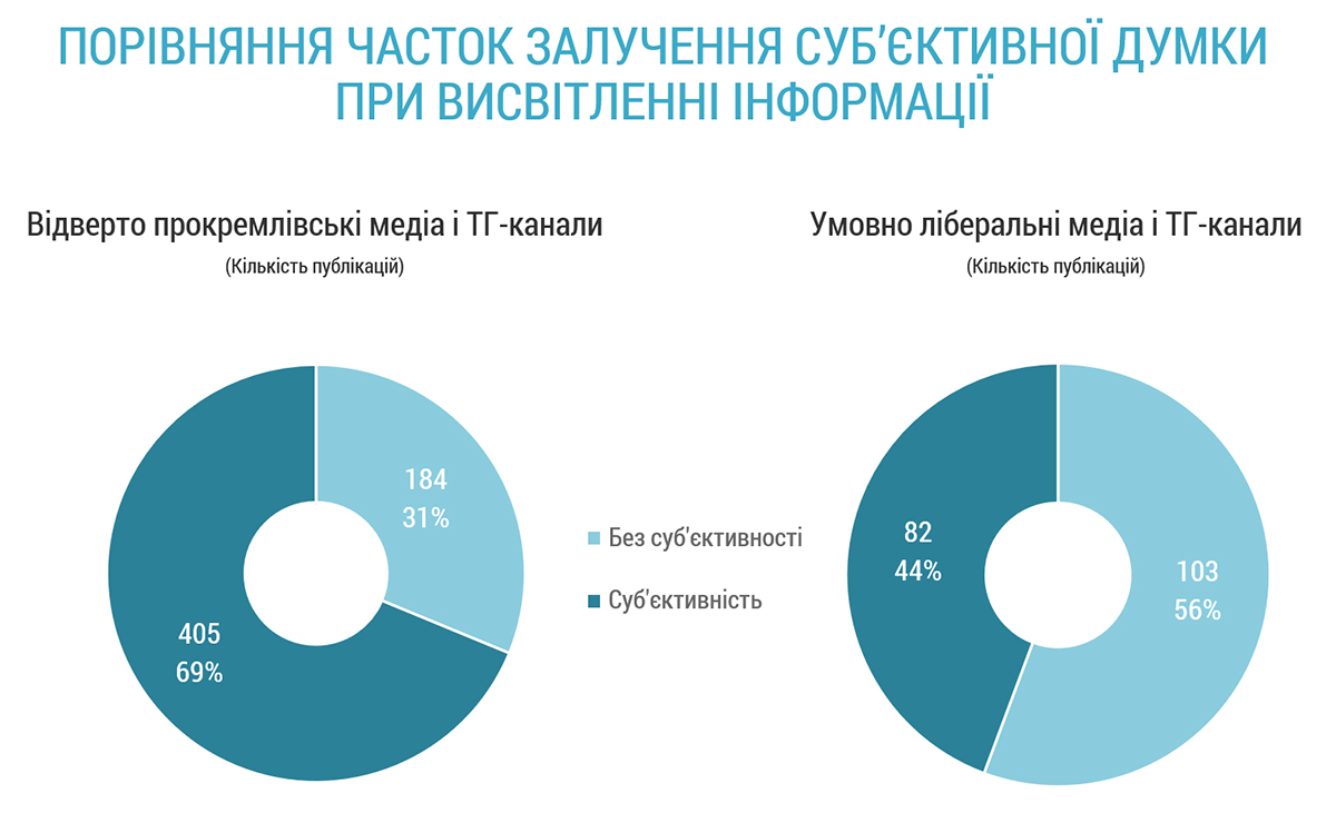Огляд загальної картини висвітлення теми в російських джерелах не залишає жодного сумніву, на що саме робив ставку Кремль, — на емоції. Майже 70% повідомлень у близьких до Кремля медіа та телеграм-каналах містили емоційну складову й суб’єктивну оцінку, натомість лише 30% розповідали про подію без залучення коментарів або суб’єктивності автора.