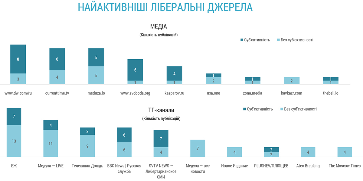 Медіа й телеграм-канали, що позиціюють себе як ліберальні, також висвітлювали наступ на РС та ГА, але їхня риторика, наративи й спосіб подачі матеріалів відрізнялися від прокремлівських видань.