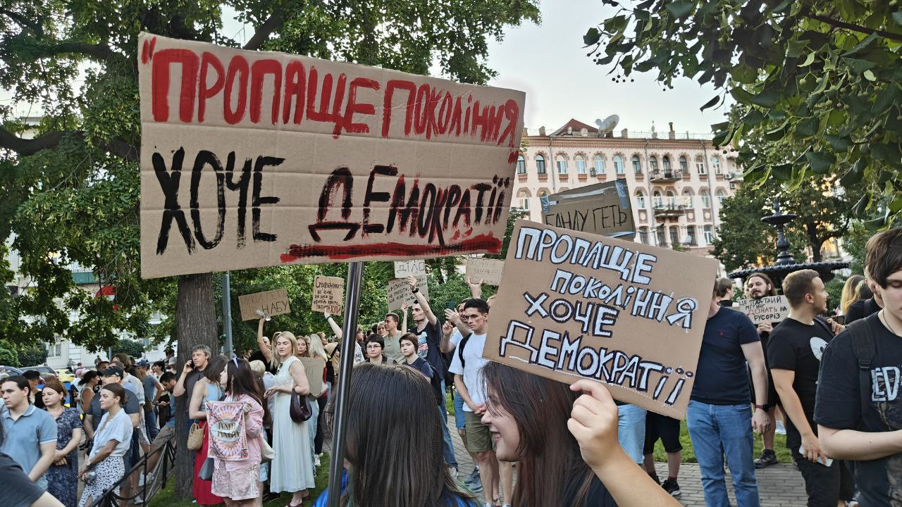 22 липня в Україні розпочалися протести, коли Верховна Рада проголосувала за законопроєкт №12414. Згідно з ним, незалежність Національного антикорупційного бюро України (НАБУ) та Спеціальної антикорупційної прокуратури (САП) фактично нівелюється, а ці органи повністю підпорядковуються Генеральному прокурору. Попри звернення громадськості та перші протести у низці міст України, президент України Володимир Зеленський підписав закон. З того часу протести посилилися, європейські партнери розкритикували закон, а група народних депутатів і сам президент подали до Верховної Ради свої версії законопроєктів, які скасовують положення ухваленого парламентом і підписаного президентом законопроєкту №12414. Як сам документ, так і протести навколо нього викликали розголос і породили теорії змови щодо цих демонстрацій.