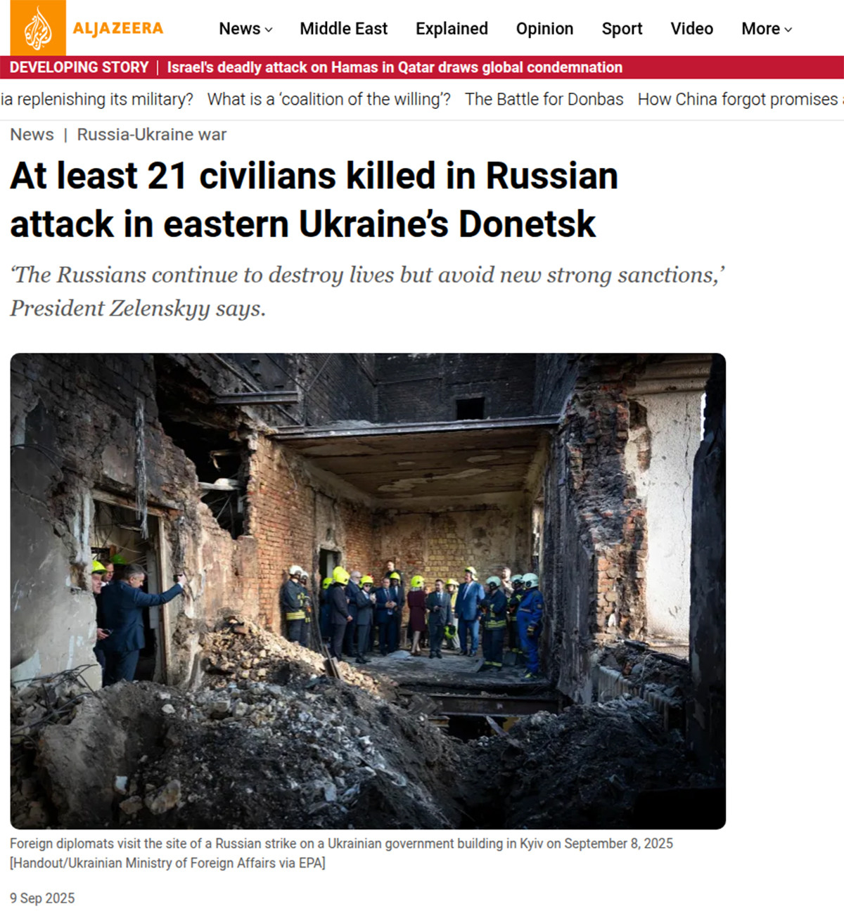 Окремо варто згадати реакцію на удар по Яровій проросійських нібито «українських» каналів. Один із таких каналів із 440 тис. підписників 9 вересня писав про удар ізраїльської авіації по керівництву ХАМАСу в Катарі, про протести в Непалі та про презентацію нових айфонів. Про загибель 25 українських громадян автори не згадали.