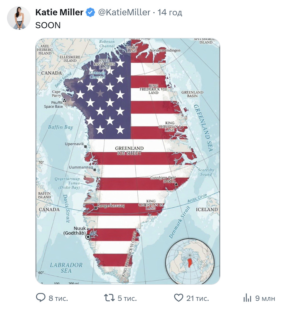 «Арктика в прив’язці до гренландського питання поки що особливо ніде не звучала. Але якщо мова серйозно піде саме про неї, то і ковбої, і євронаркомани, вважаємо, вчепляться в обмерзлий острів зубами в спробі забезпечити собі арктичними надрами енергетичний суверенітет через пару-трійку десятиліть. У військовий конфлікт особливо не віримо, але, з іншого боку, дід і без Гренландії відморожений далі нікуди».