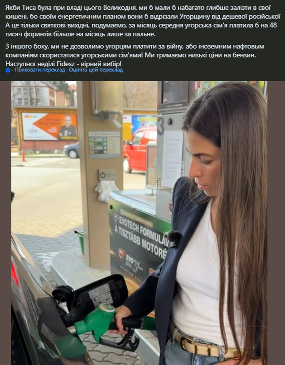 У тій самій логіці звинувачують європейських чиновників і великий бізнес, які, за твердженням Орбана, пов’язані з «Тисою». «Партія “Тиса” в Брюсселі лобіює скасування захищеної ціни на пальне. Вони просять брюссельців атакувати угорський уряд за те, що він продає бензин угорцям за нижчою, захищеною ціною», — йдеться в одному з дописів на офіційній фейсбук-сторінці Віктора Орбана.