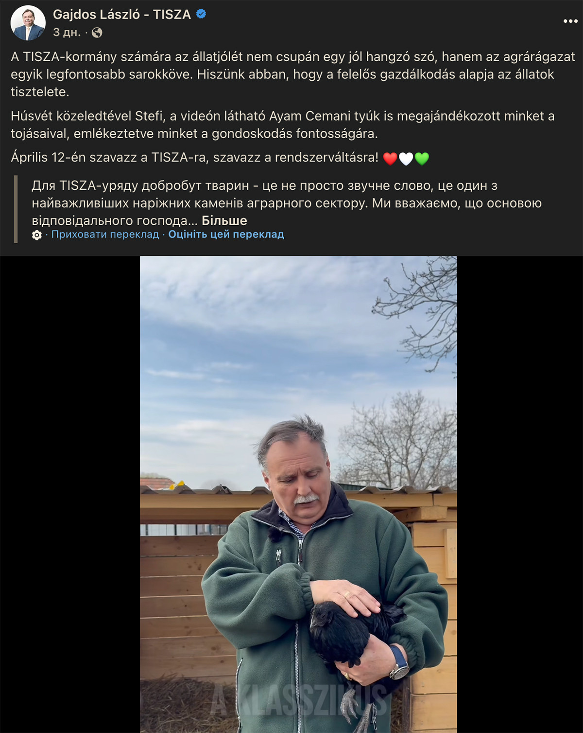 Повідомлення зі сторінки Ласла Гайдоша у фейсбуці від 3 квітня