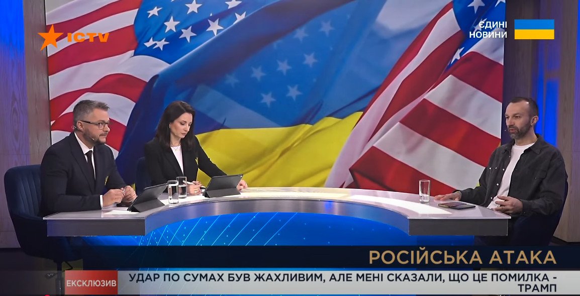 У зовнішньополітичній тематиці була значна кількість суперечливих заяв президента США Трампа про російсько-українську війну і зокрема про російський теракт у Сумах. Експертний розгляд цих заяв в ефірі Першого каналу Суспільного був відчутно якіснішим і глибшим за такий у телемарафоні.