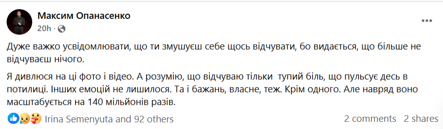 Редактор проєктів Bihus.Info Максим Опанасенко написав: «Відчуваю тільки тупий біль, що пульсує десь в потилиці. Інших емоцій не лишилося».