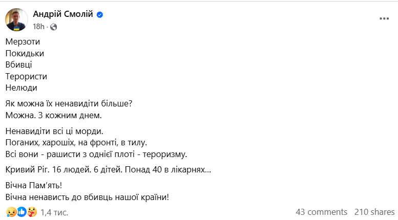 Багато медійників написали про схожі емоції та відчуття гніву. «Як можна їх ненавидіти більше? Можна. З кожним днем. Всі вони — рашисти з однієї плоті - тероризму», — написав телеведучий «Еспресо» Андрій Смолій.