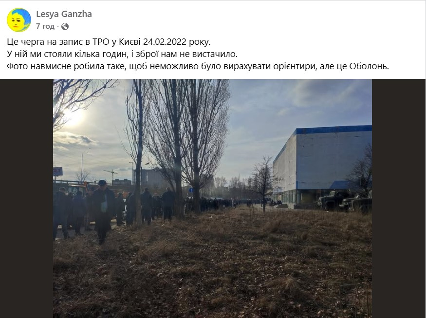 Медійниця та військовослужбовиця Леся Ганжа згадала черги бажаючих потрапити до ТрО у перший день повномасштабного вторгнення.
