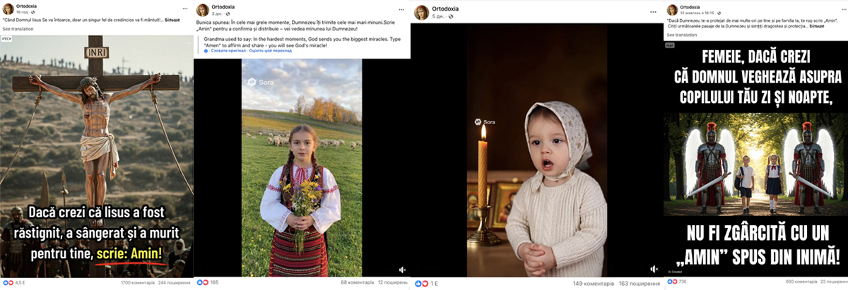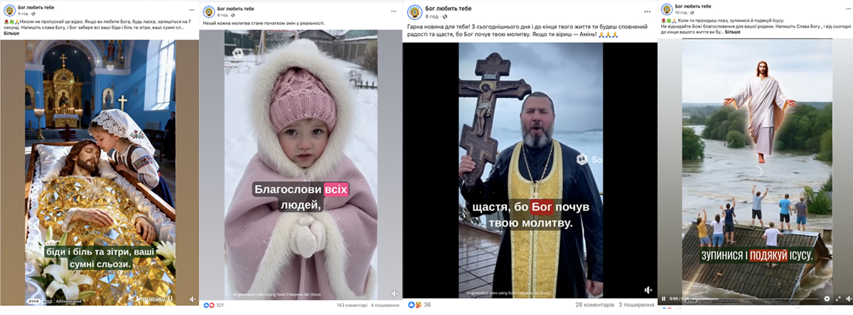 Останній тренд — ШІ-відео з іконами, святими, священниками, дітьми, які ніби ходять, «промовляють молитви» і закликають написати «амінь».