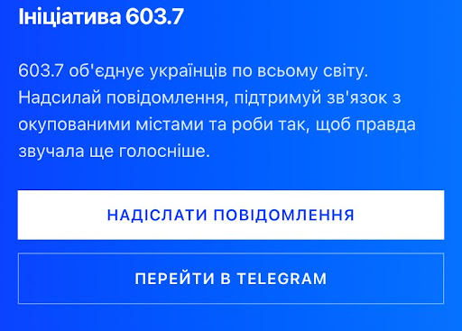 Платформа 603.7 створена для того, щоб мешканці окупованих територій могли бачити живі повідомлення від співгромадян: слова підтримки, подяку, історії, побажання, а іноді просто - «ви нам потрібні». У час, коли окупанти намагаються переконати людей, що Україна втратила інтерес до них, сервіс діє у зворотному напрямку: нагадує, що країна - поруч, незалежно від кордонів на карті.