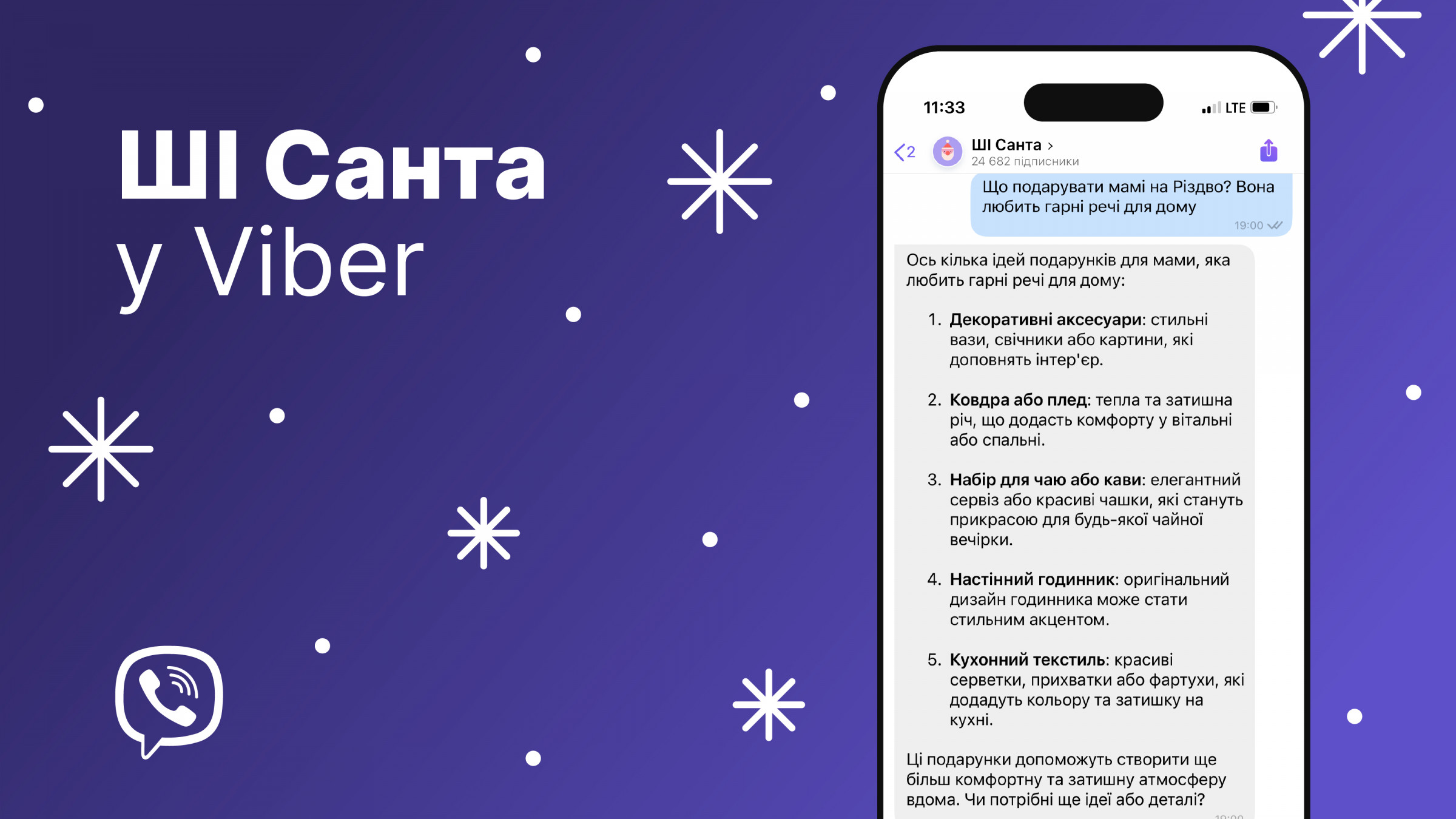 Напередодні Різдва Rakuten Viber запустив чатбот на базі штучного інтелекту — ШІ Санту. Про це повідомила пресслужба компанії.