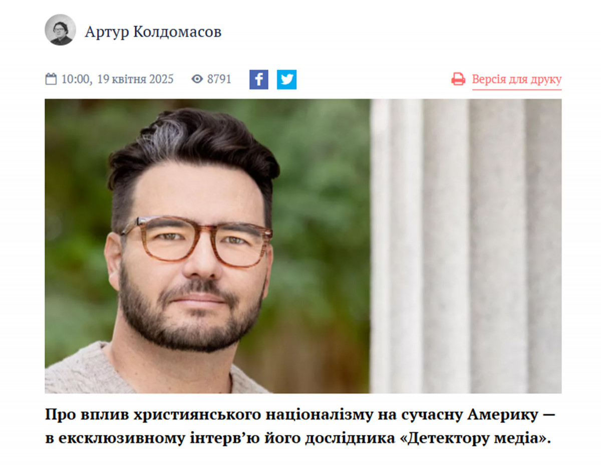 Бред Оніші є ведучим подкасту Straight White American Jesus, викладачем Університету Сан-Франциско й автором книги «Готуючись до війни: екстремістська історія білого християнського націоналізму. Що далі?». В інтерв’ю Артуру Колдомасову він розповів про вплив християнського націоналізму на сучасну Америку і ставлення Трампа до російської агресії проти України.