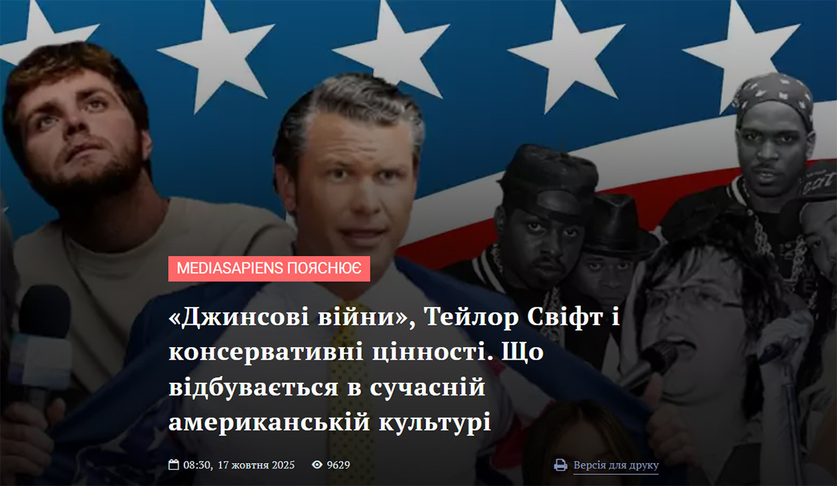 13. «Джинсові війни», Тейлор Свіфт і консервативні цінності. Що відбувається в сучасній американській культурі (9,6 тис. переглядів).