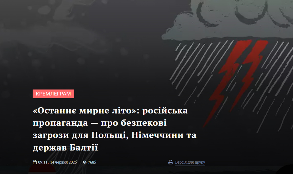 19. «Останнє мирне літо»: російська пропаганда — про безпекові загрози для Польщі, Німеччини та держав Балтії (7,6 тис. переглядів)