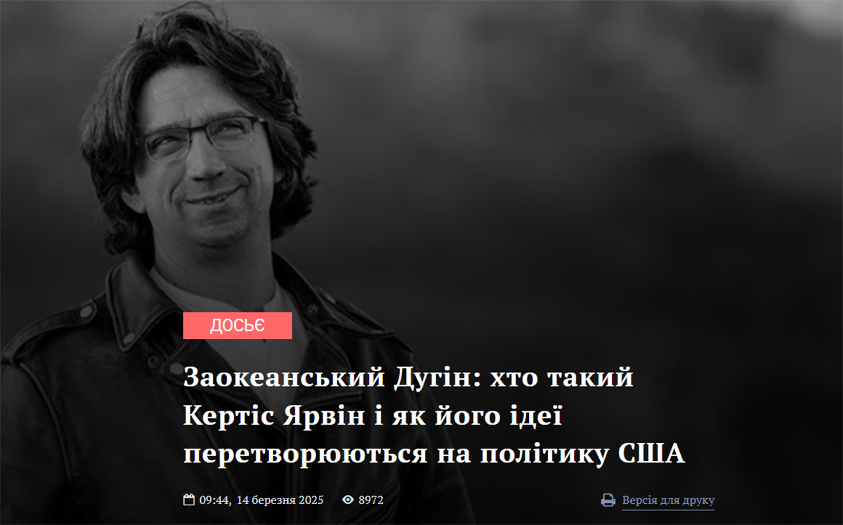 15. Заокеанський Дугін: хто такий Кертіс Ярвін і як його ідеї перетворюються на політику США (8,9 тис. переглядів).