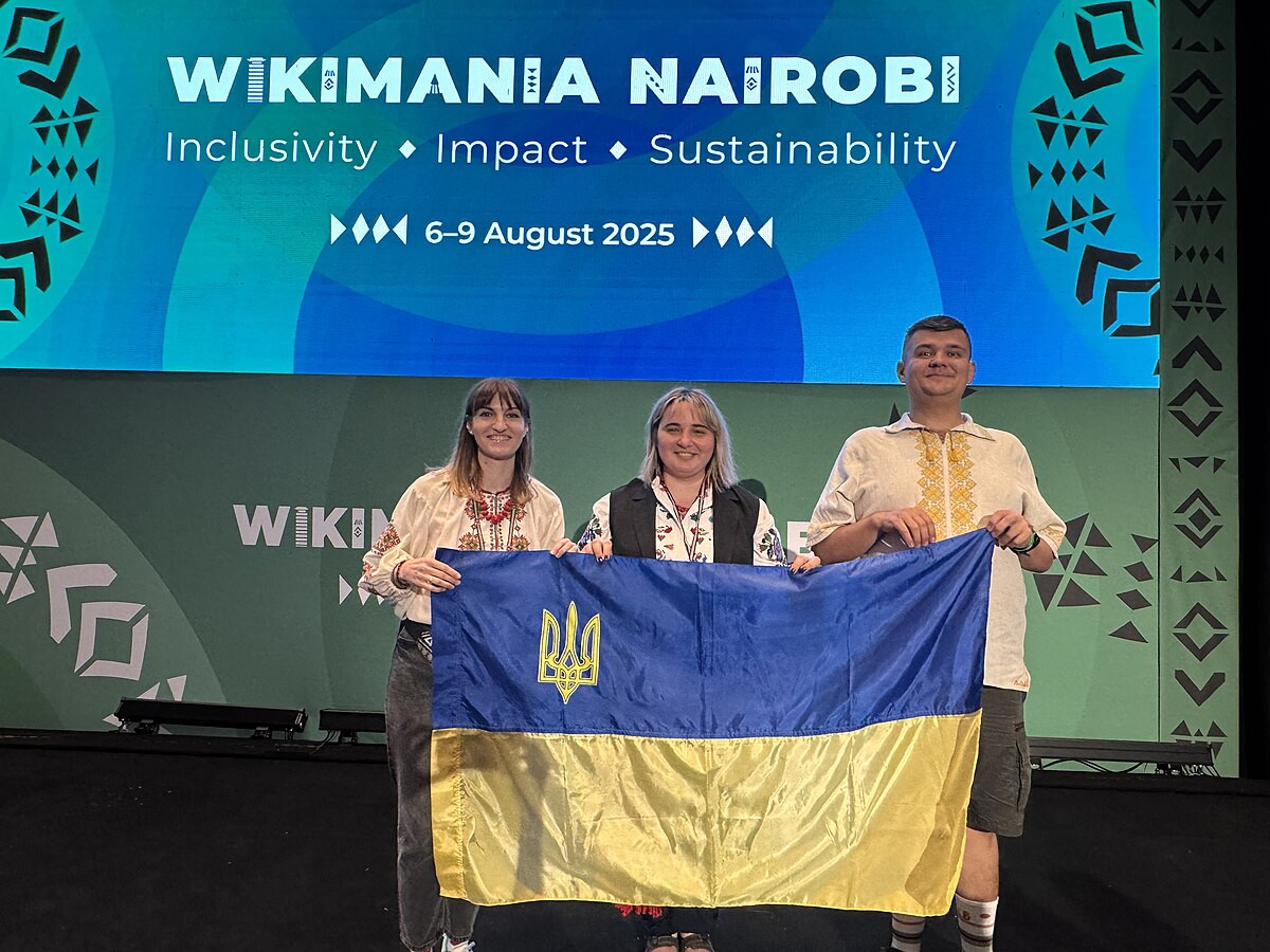 Фото: Члени української делегації Kate Kifa, Мар’яна Сеньків та Вячеслав Мамон на конференції “Вікіманія” в Найробі