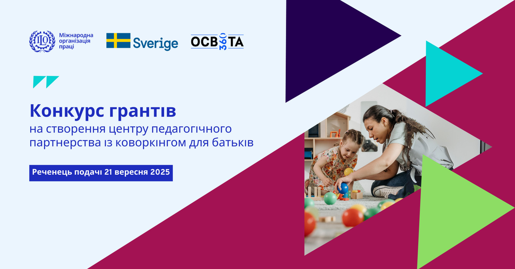 У межах конкурсу буде відібрано щонайменше два пілотні центри педагогічного партнерства з коворкінгами для батьків, які отримають грантову підтримку та експертний супровід для запуску простору.