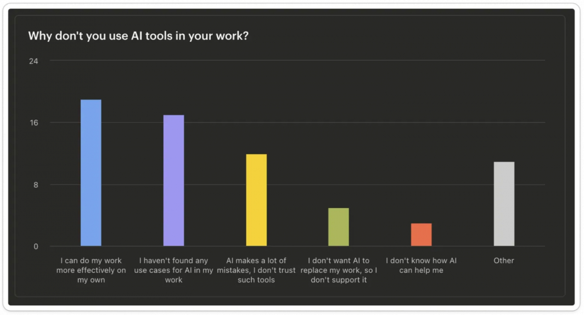 Ті, хто ще не працює з ШІ-інструментами, назвали основні причини: