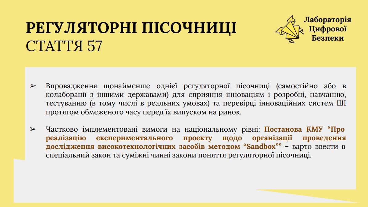 Водночас вона відзначила позитивні кроки, зокрема впровадження регуляторних пісочниць відповідно до статті 57 AI Act та запуск першої експериментальної пісочниці для ШІ та блокчейнів.
