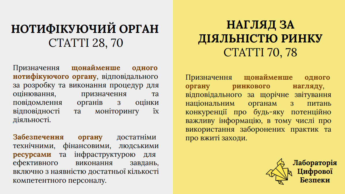 Окремо під час презентації порушили питання призначення компетентних органів у сфері штучного інтелекту. За словами Анни Людви, наразі в Україні немає усталеної практики, а можливим варіантом є делегування повноважень існуючим органам, зокрема Національному агентству з акредитації України, НКЕК або Нацраді як медіарегулятору. Водночас це потребує внесення змін до законодавства та оцінки навантаження на інституції.