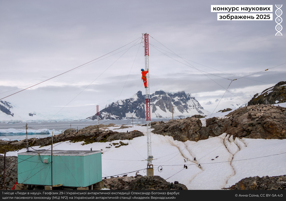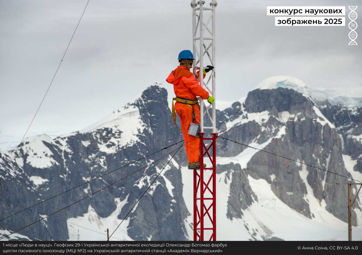 Перше місце — два фото геофізика 29-ї Української антарктичної експедиції Олександра Богомаза, який фарбує щогли пасивного іонозонду (МЦІ №2) на Українській антарктичній станції «Академік Вернадський». Авторка — Анна Соіна.
