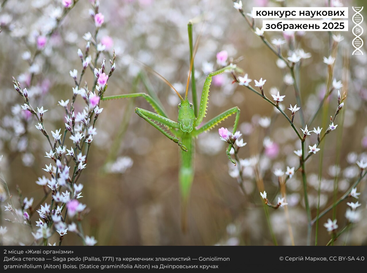 Друге місце — дибка степова — Saga pedo (Pallas, 1771) та кермечник злаколистий — Goniolimon graminifolium (Aiton) Boiss (Statice graminifolia Aiton) на Дніпровських кручах. Автор — Сергій Марков.