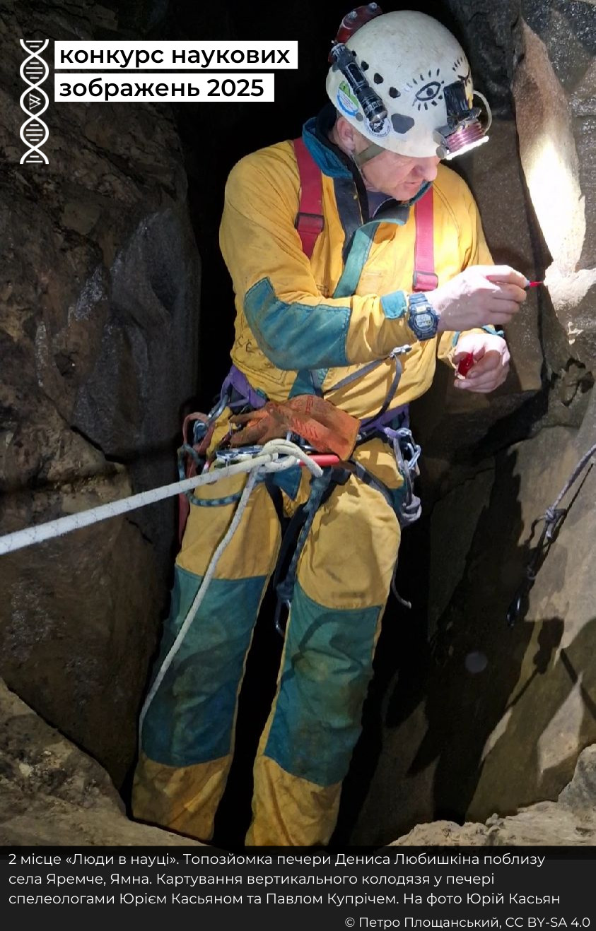 Друге місце — топозйомка печери Дениса Любишкіна поблизу села Яремче, Ямна. Картування вертикального колодязя у печері спелеологами Юрієм Касьяном та Павлом Купрічем. На фото Юрій Касьян. Автор знімку — Петро Площанський.